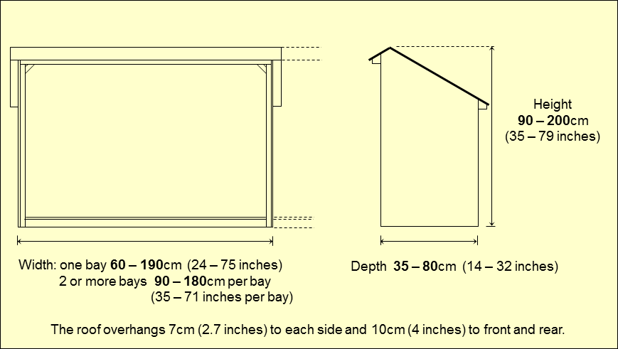 - The width for two or more bays is almost unlimited as long as each bay is between 90 and 180cm wide;